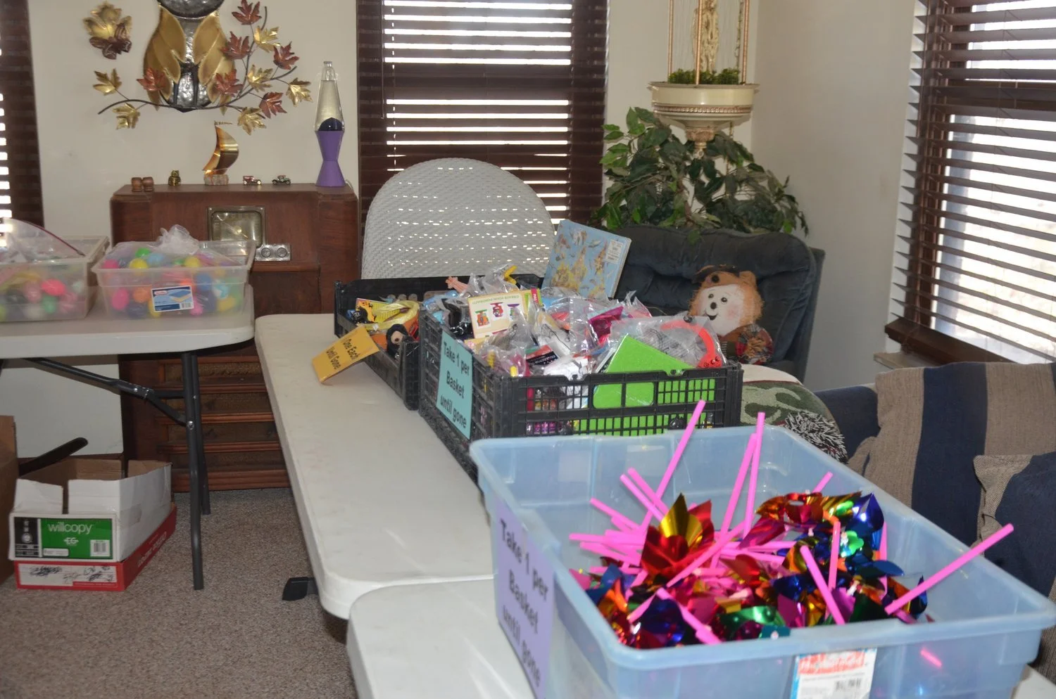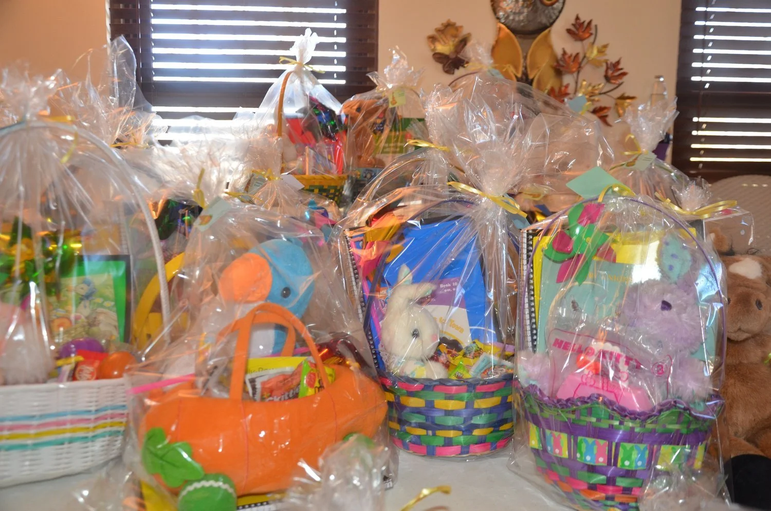 Each year the Paragon Optimist Club makes Easter baskets for deserving kids. The age range is from infants to preteen. We make any where from 100 to 150 baskets. One group needed the baskets earlier than usual. So we made 30 baskets.