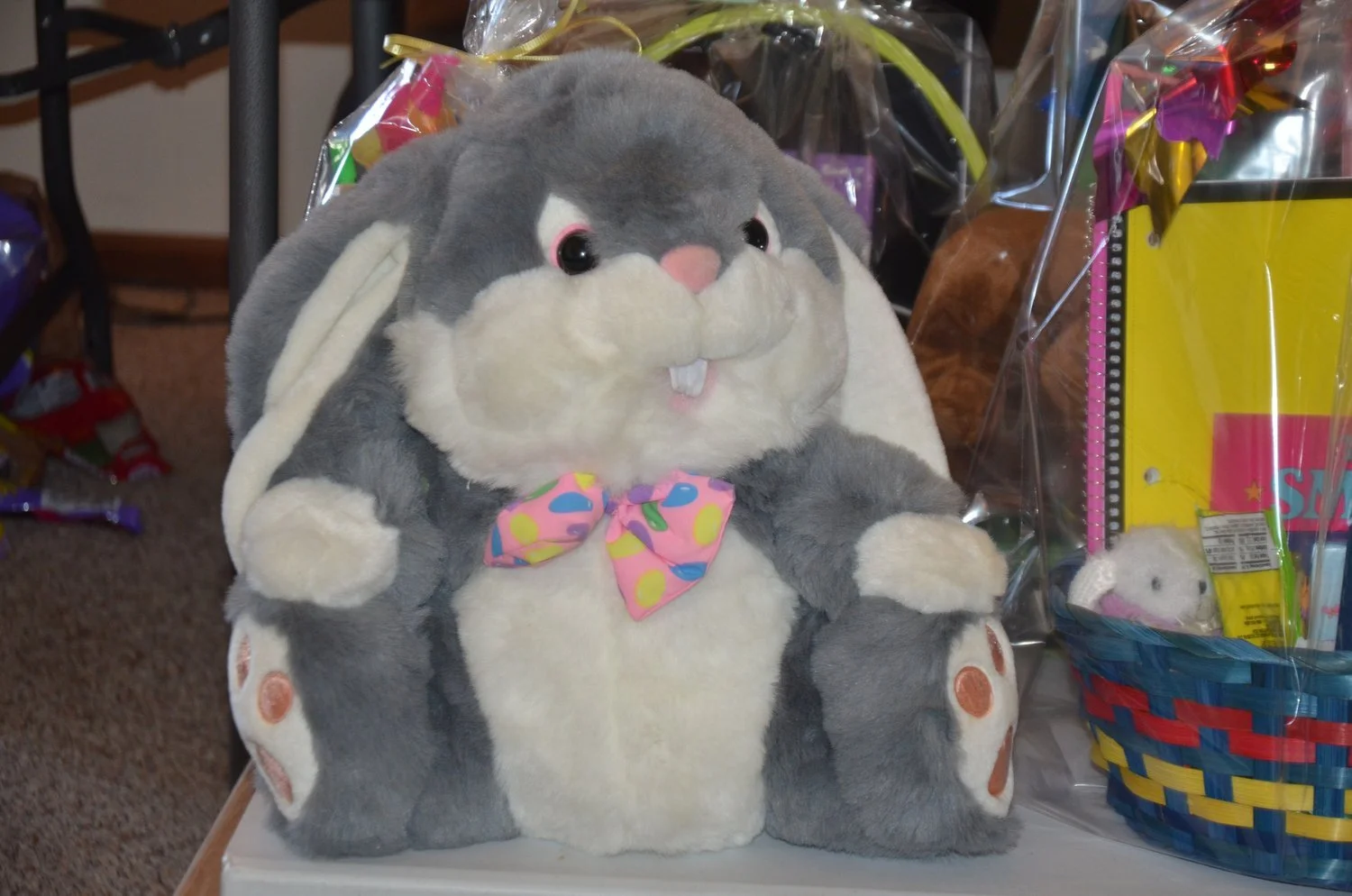 A fun time was had selecting the stuffed animal, book, toys and candies that each basket held. It was hard not to eat the candy, especially the chocolate. (It's not like when you sneak some out of your kid's basket.)