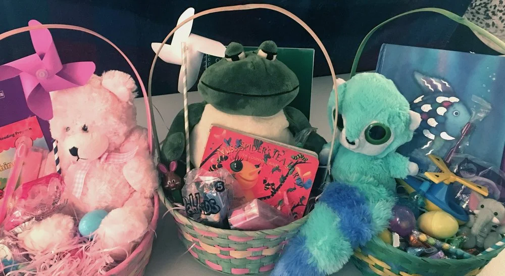 Because NO CHILD should be LEFT OUT of the chance to celebrate the season! Every year we gather and assemble at least 150 baskets that are distributed by Mercy Health - St. Raphael's food pantry and Sojourner. Every basket contains a stuffed animal, book, toy and of course candy.
